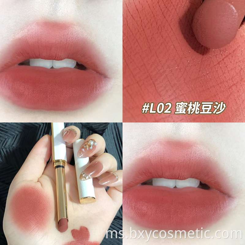 Reka bentuk tiub nipis kecil produk ini diilhamkan oleh kasut bertumit tinggi yang memberikan keyakinan kanak-kanak perempuan. Gabungan Ilnes Logam yang kemas dan kulit putih yang elegan adalah perlanggaran ketegaran dan kelembutan! Produk ini mendedahkan keyakinan diri wanita yang berani dan memberi penghormatan kepada Kekuatan Wanita! Produk Advanced Vcelet Semi-Matte, ketaatan Dobule, mengunci warna tahan lama, bisu tetapi tidak kering, halus halus, bahan semula jadi, bibir berkhasiat, perlahan-lahan tergelincir, menunjukkan solek bibir kelembutan yang tinggi ketepuan!