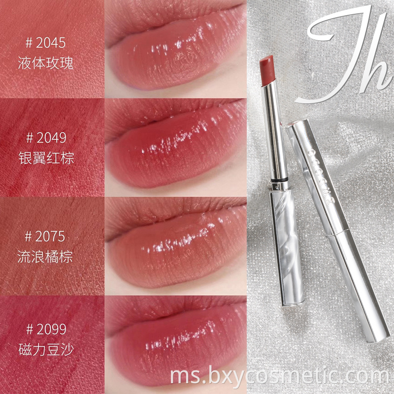 Teknologi lebur warna inovatif, penambahan khas perlindungan bibir asid hyaluronik, melembapkan bibir anda dengan sorotan semulajadi.7 warna, sesuai untuk semua nada kulit.